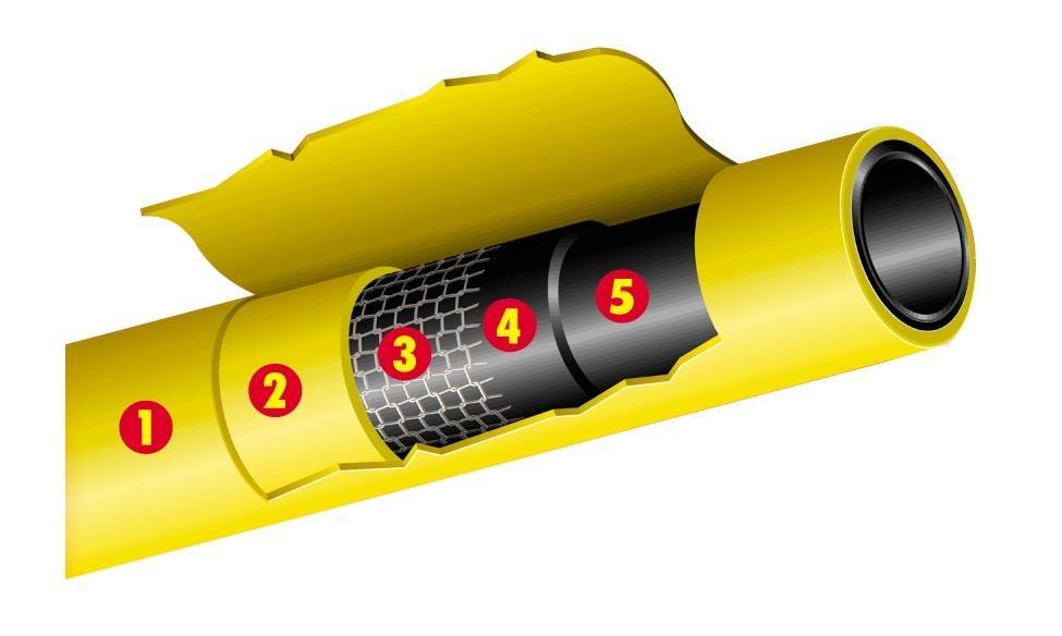 The multi-layer design, made of woven fibre and a double core layer, Tricoflex is highly flexible for easy handling, with excellent resistance to repeated bending, crushing and pulling. In addition, the lining is extremely smooth, maintaining even flow through the hose. Especially thick and made of high quality materials, Tricoflex offers excellent aging resistance with superb preservation of flexibility. Its exterior yellow PVC covering gives it good protection against abrasion and UV. The yellow covering also promotes safe use as it can easily be seen by customers and contractors.