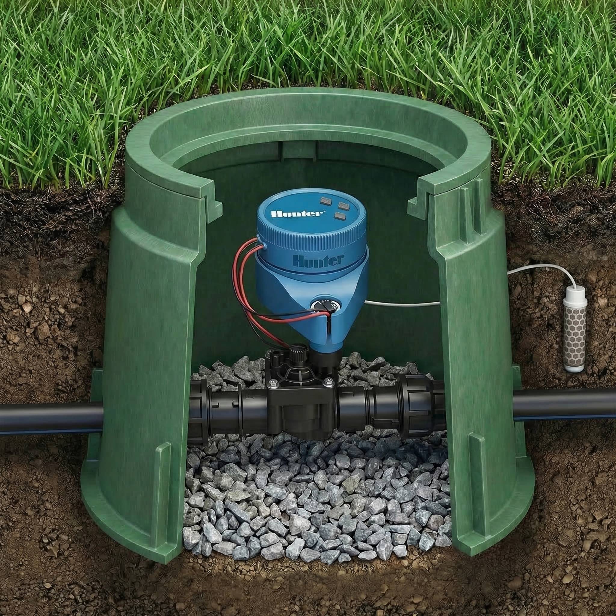 The soil sensor fits to the Hunter Node BT valve box controllers to allow soil moisture sensing.
