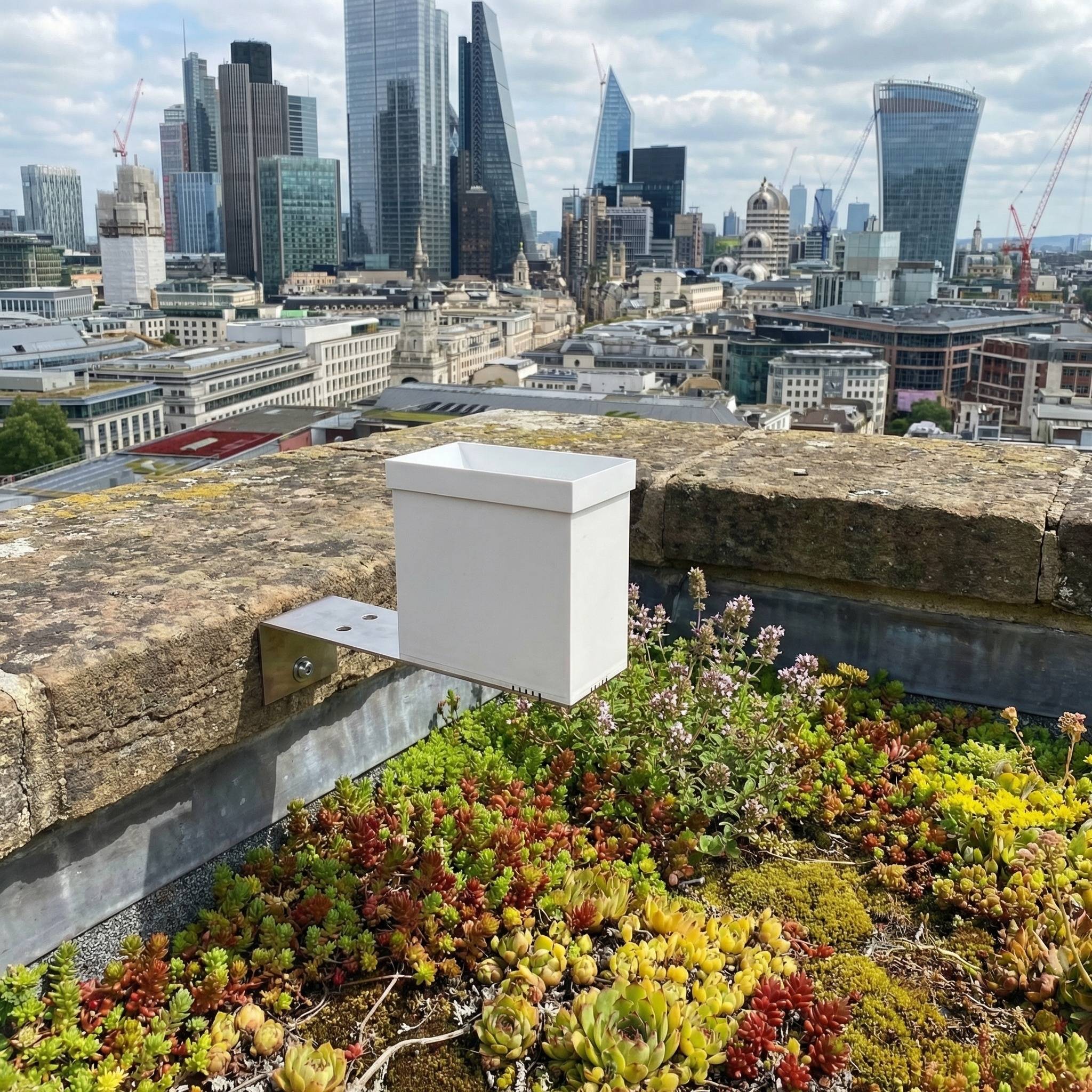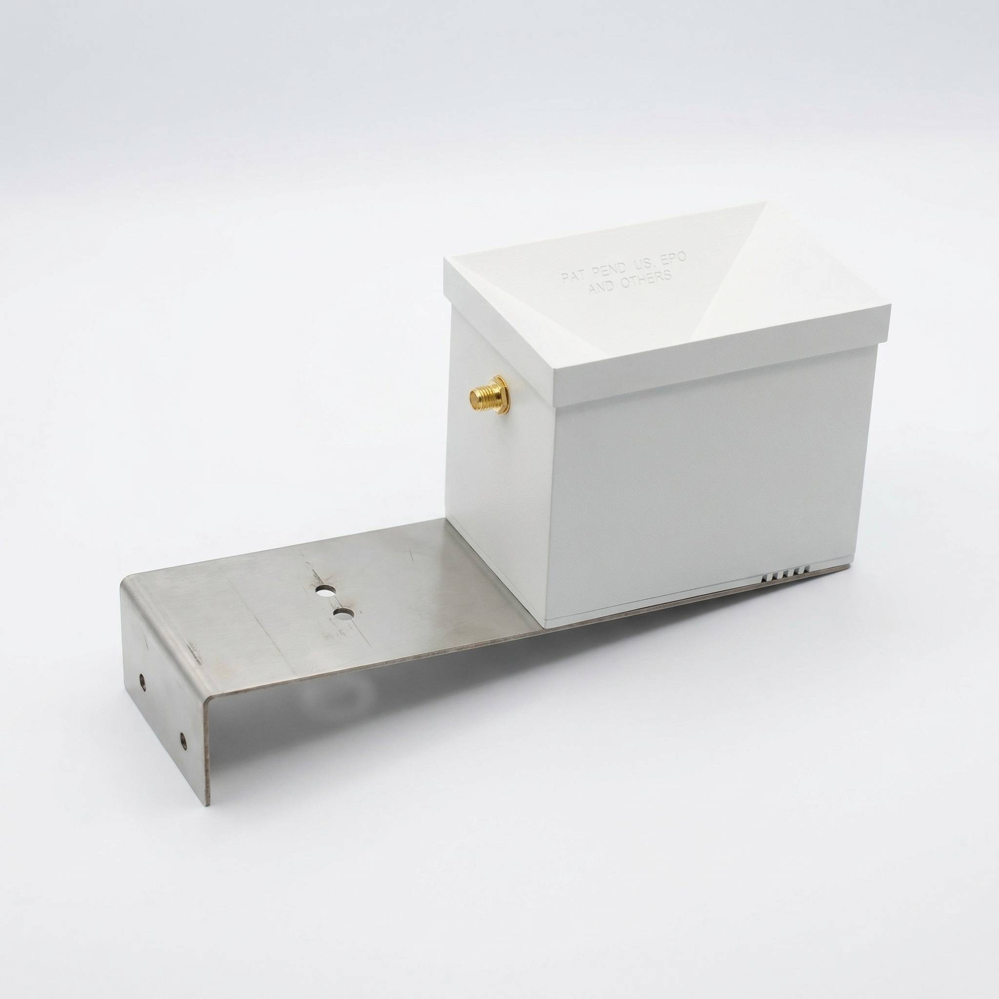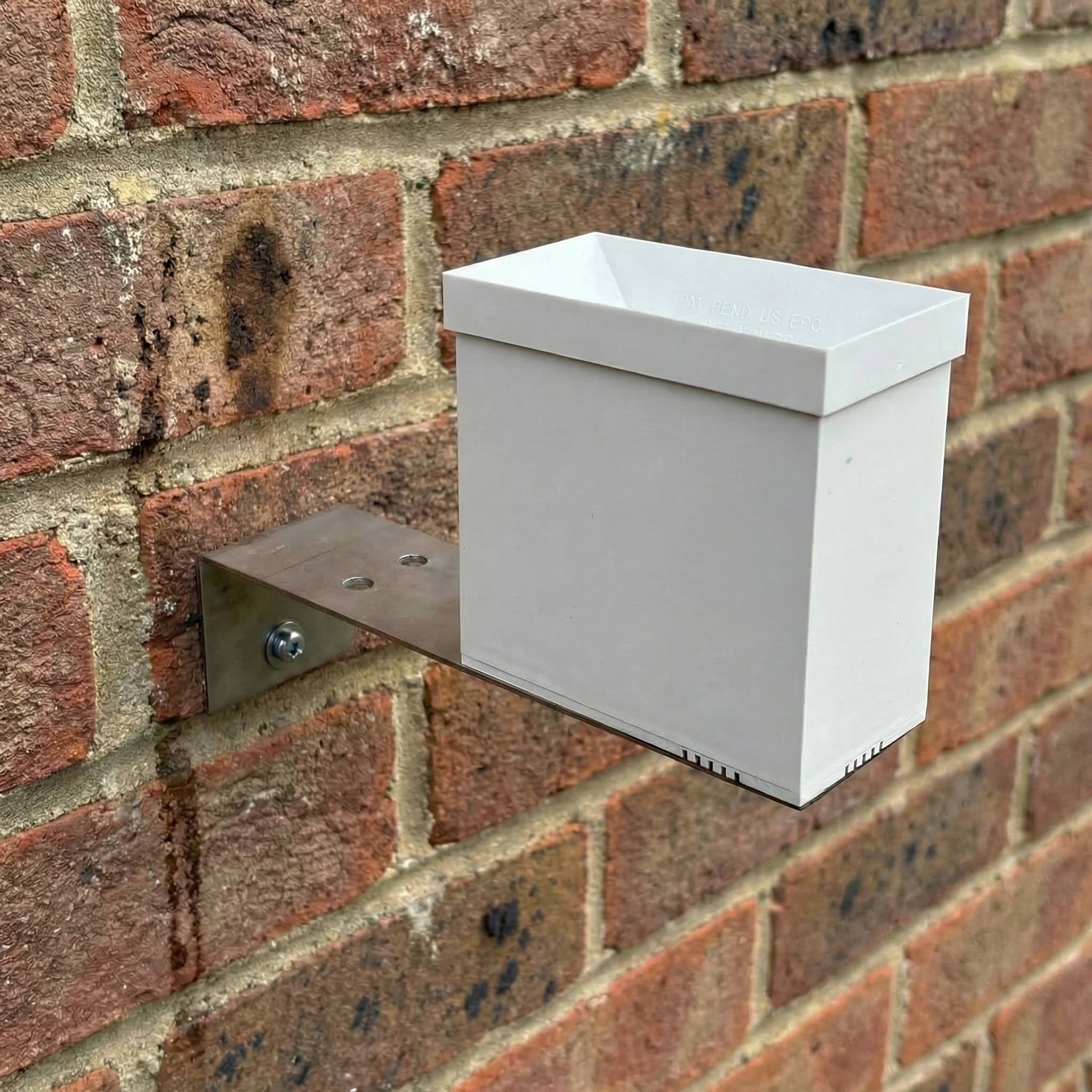 Rain sensor comes with mounting bracket with screw holes for fixing to wall or fence post.