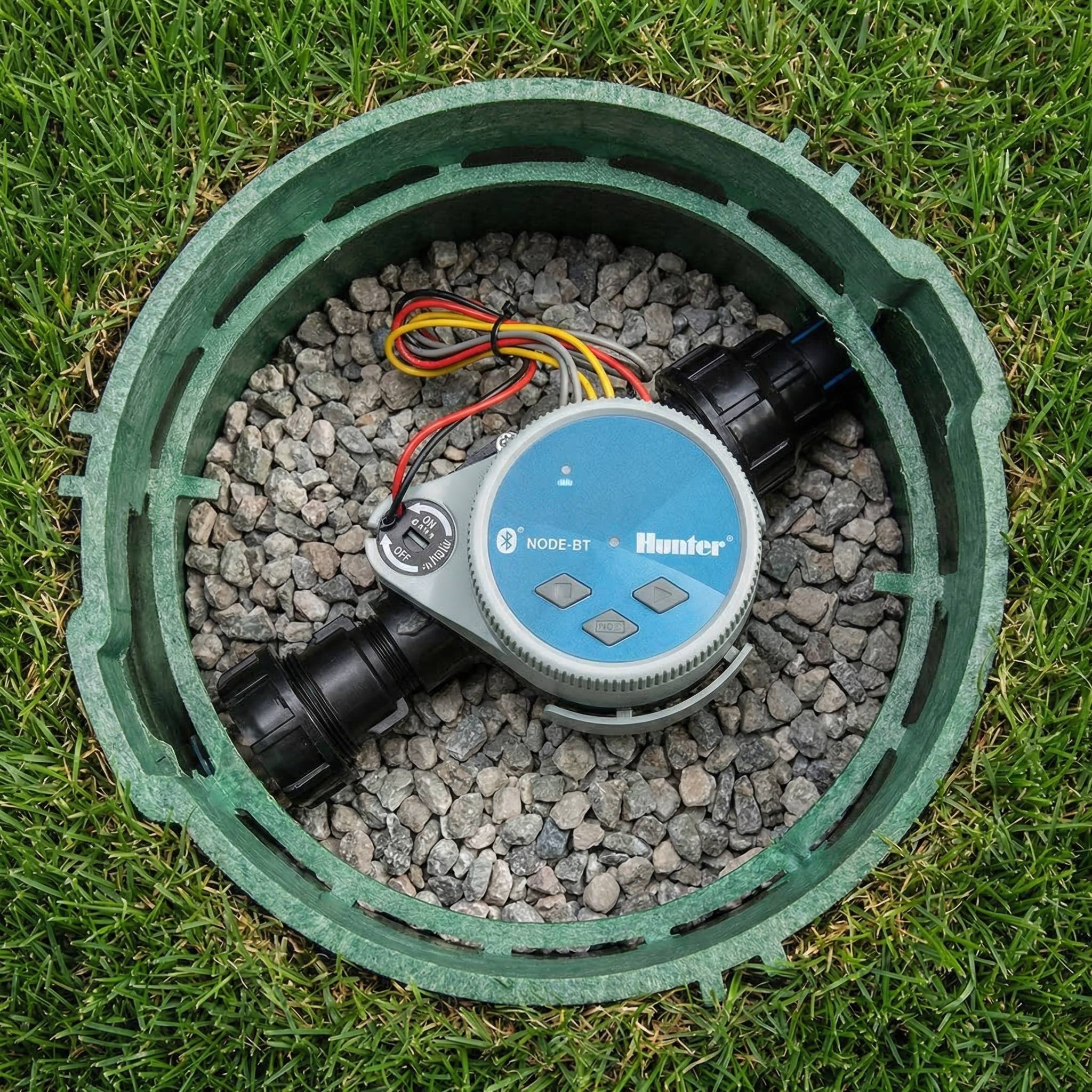 Avoid opening dirty valve boxes with the battery-operated Hunter Node Single Zone Bluetooth Controller “NODE-BT”!