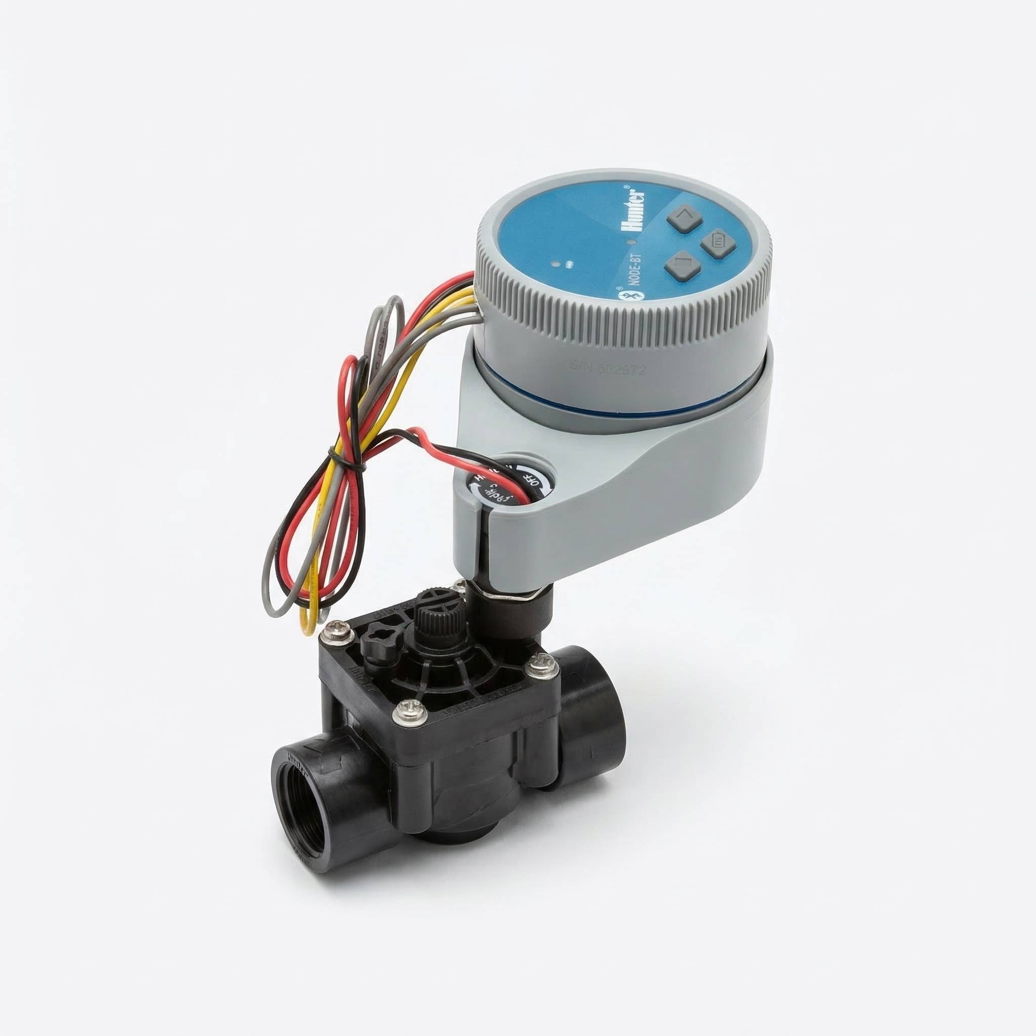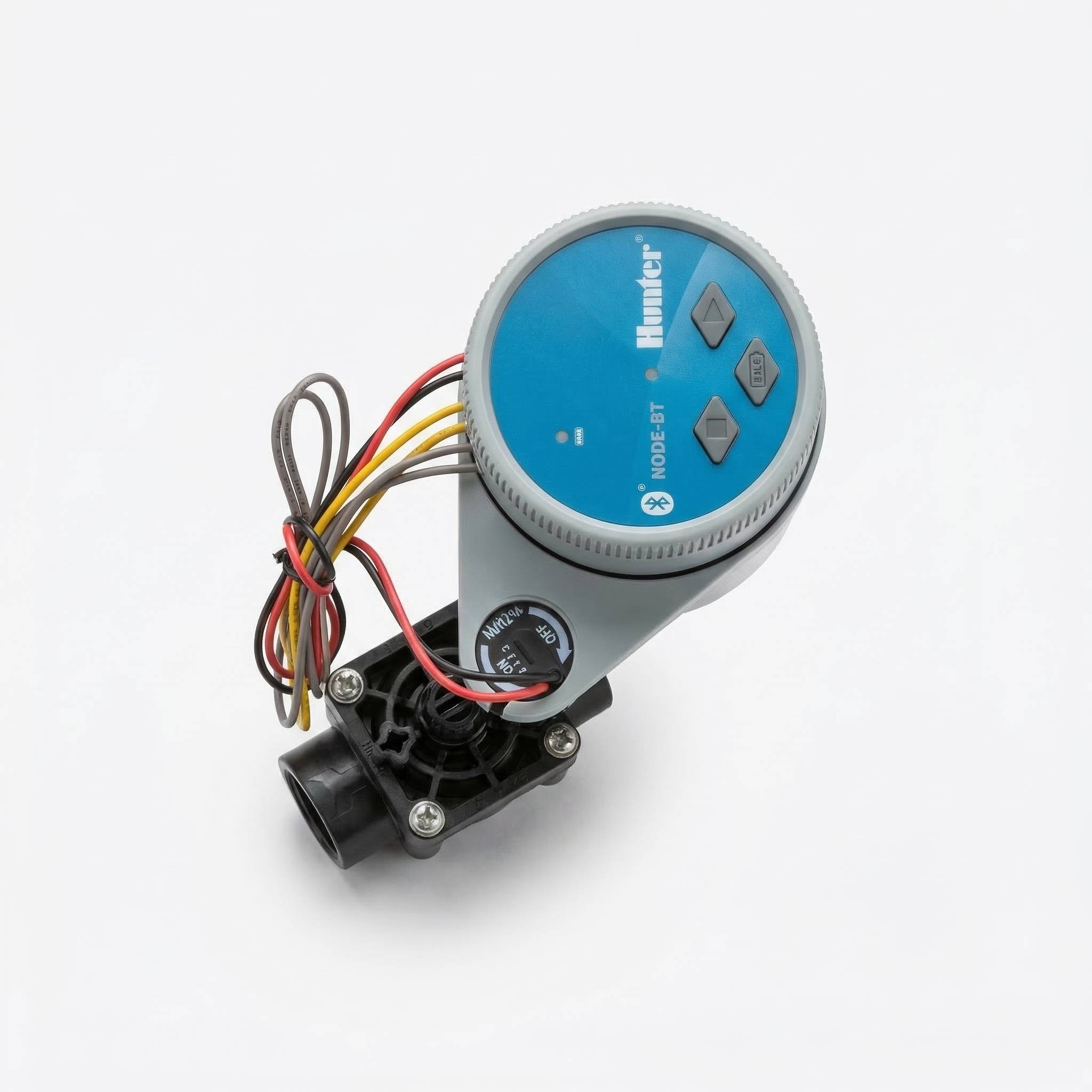The Hunter Node Bluetooth controller – single zone, comes complete with a pre-wired 1″ BSPF solenoid valve for quick and easy installation into valve boxes and sites without electricity. The Node BT is fully waterproof and exceptionally reliable