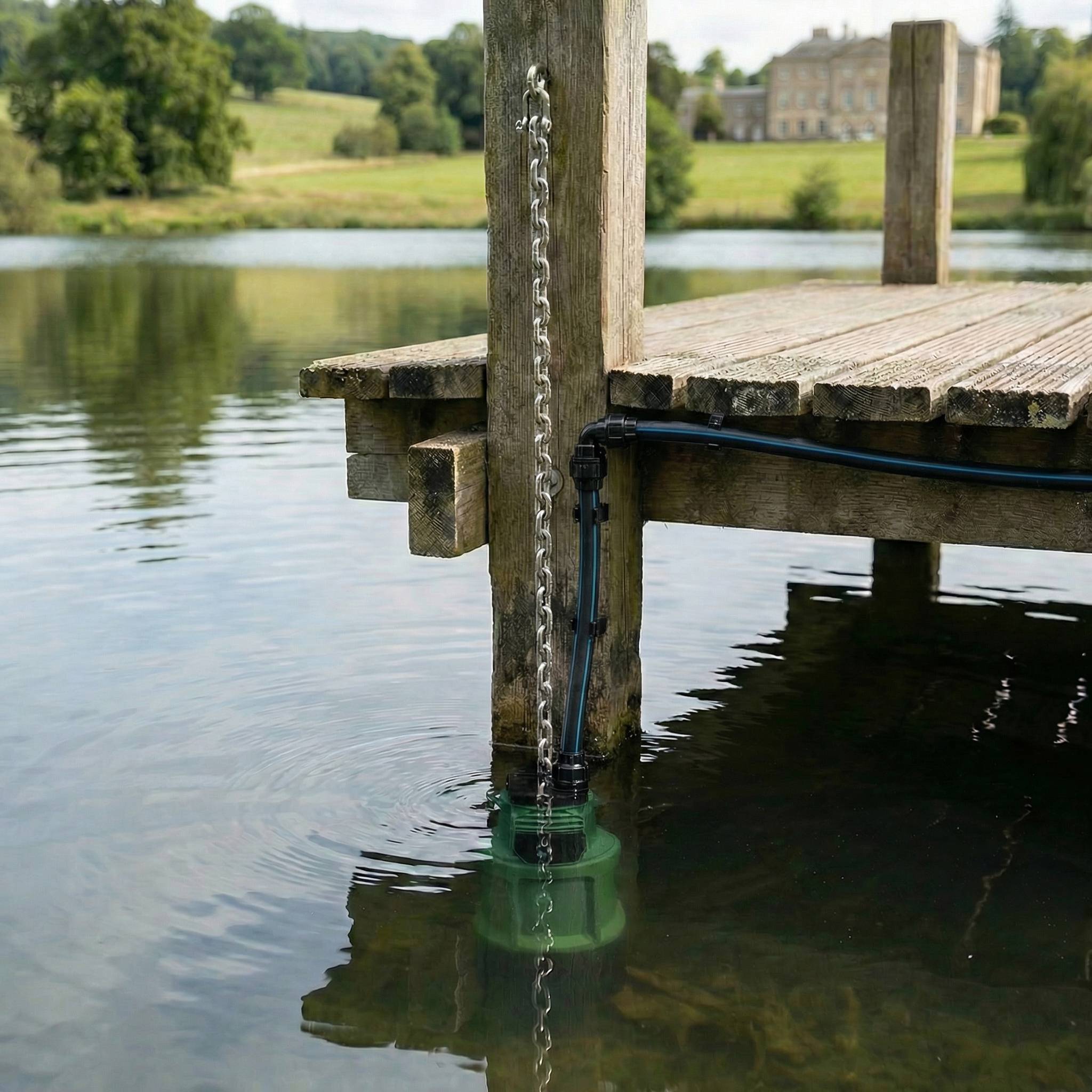 To secure the chain a stainless steel hook is included along with a rawlplug for fixing into brickwork. Pumps should be secured so that they are suspended above the of the well or lake bed and for dirtier water a floating inlet is also recommended.