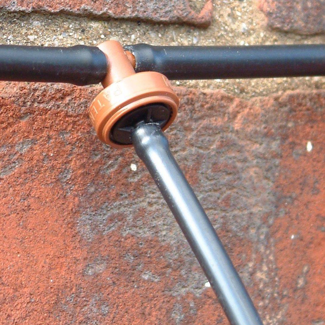 The 1.2 l/h ultra-low flow dripper reduces water wastage as the output matches more closely the absorption rate of compost. In addition, the low flow rate allows more drippers to operate from a single tap.