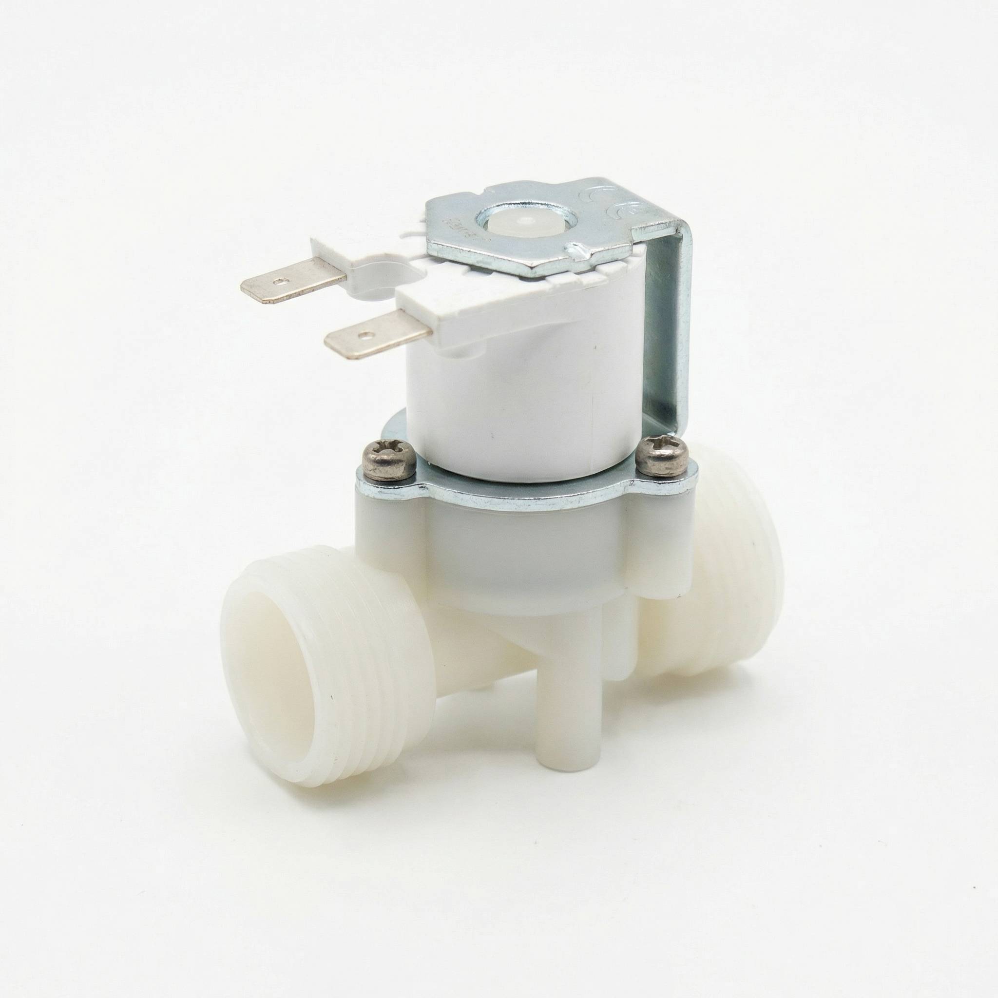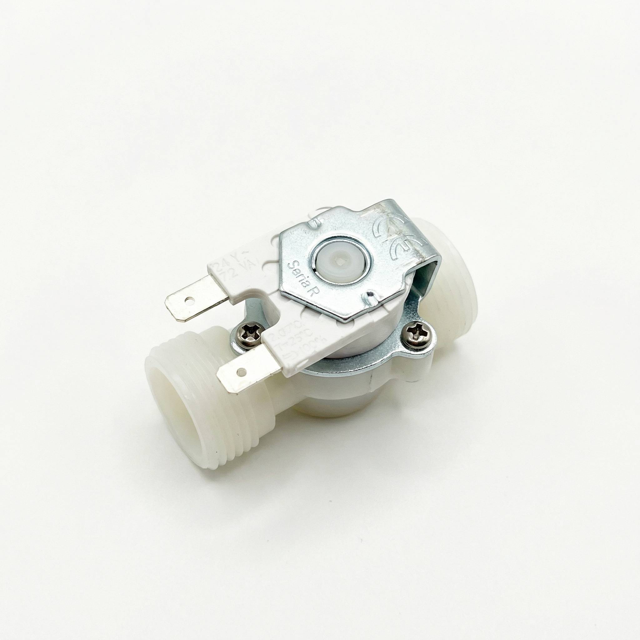 This valve has a fibreglass polyamide body with 2 mounting pillars for self tapping screws. It has an inlet strainer and a 3/4″ BSPM inlet/outlet. Rating: 3.8W Pressure range: 0.5-10 bar.