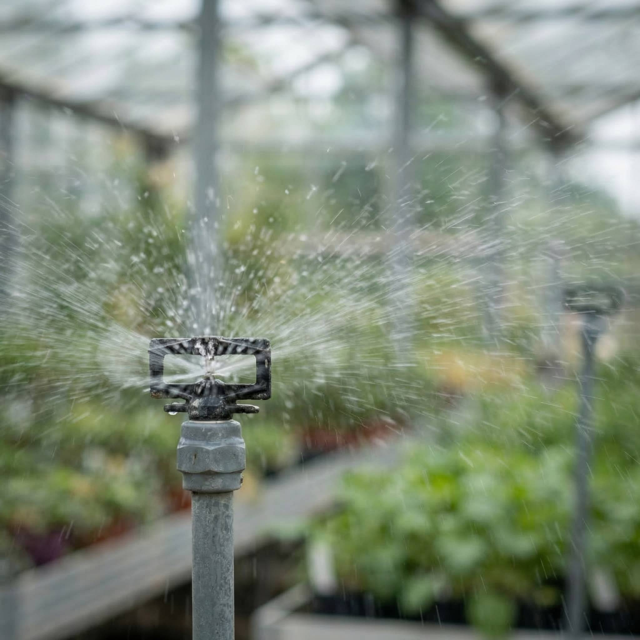 By producing a very fine mist spray, the tops of the leaves are kept moist, reducing moisture losses from the leaves. The nozzle was originally developed by Access Irrigation in conjunction with the Amber Light Engineering Company and went on to become the ‘standard’ nozzle for mist propagation systems.