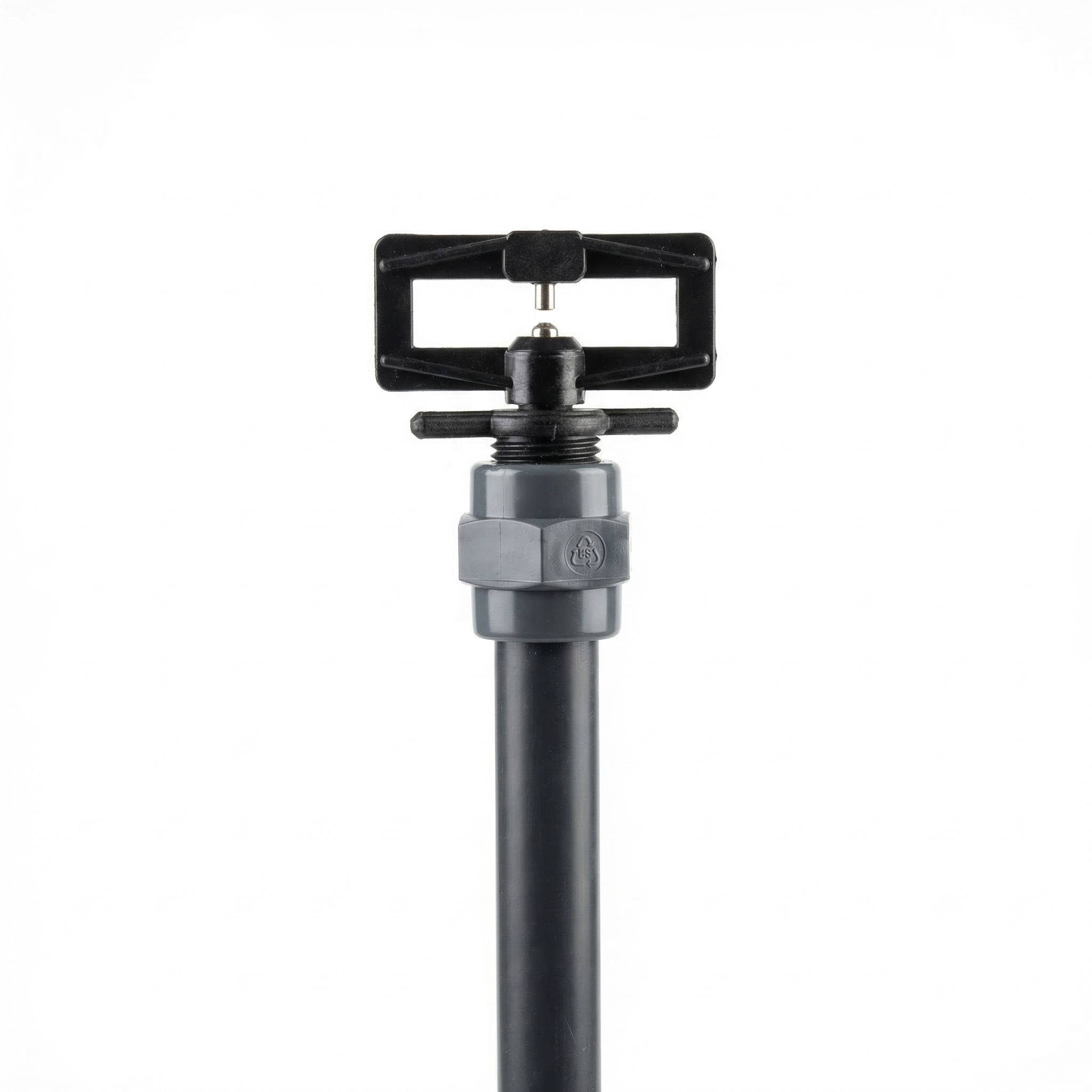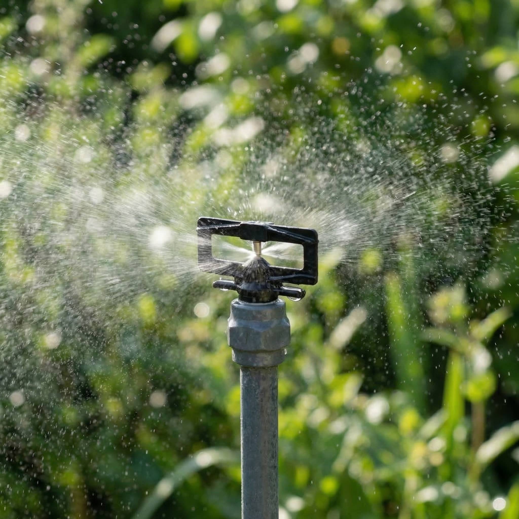 The Amber nozzle has a 1/2″ BSPM thread and ideal pressure 3.5 bar. Use 20mm PVC pipe to link sprinklers.