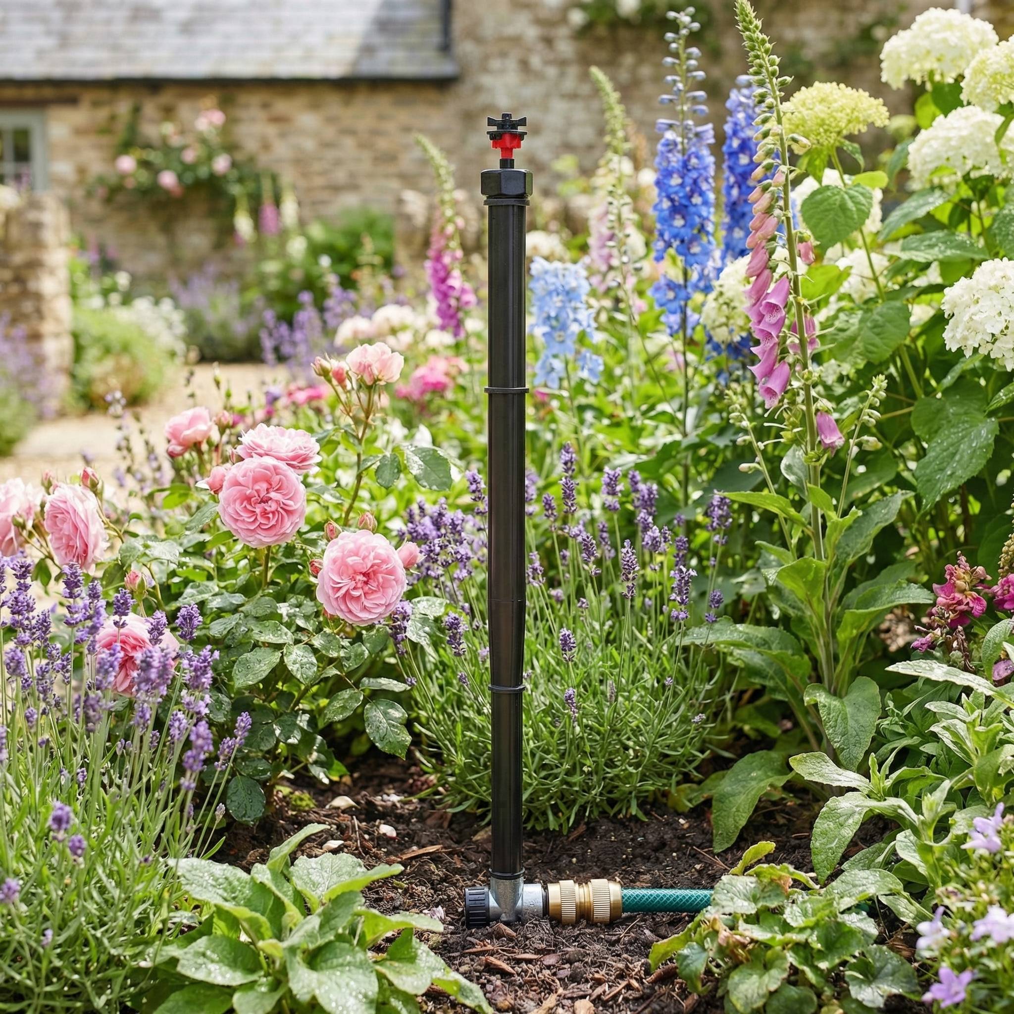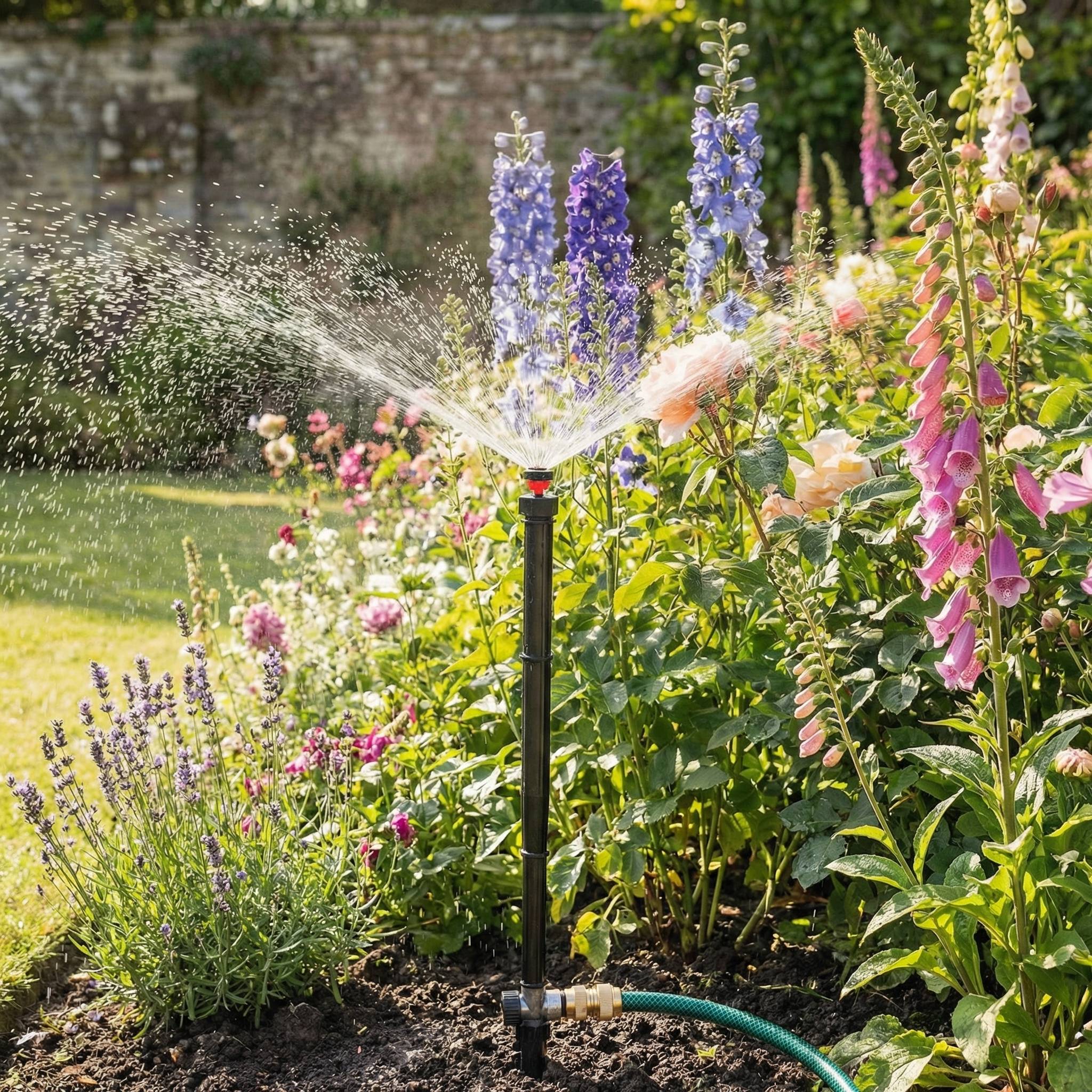For garden borders where a run of sprinklers are required choose the QC version and swap the entry fittings for FRF16-3 and FRM16-3 Pozilock fittings and then use 16mm polythene pipe to connect together. For longer runs use 20mm pipe and fittings.