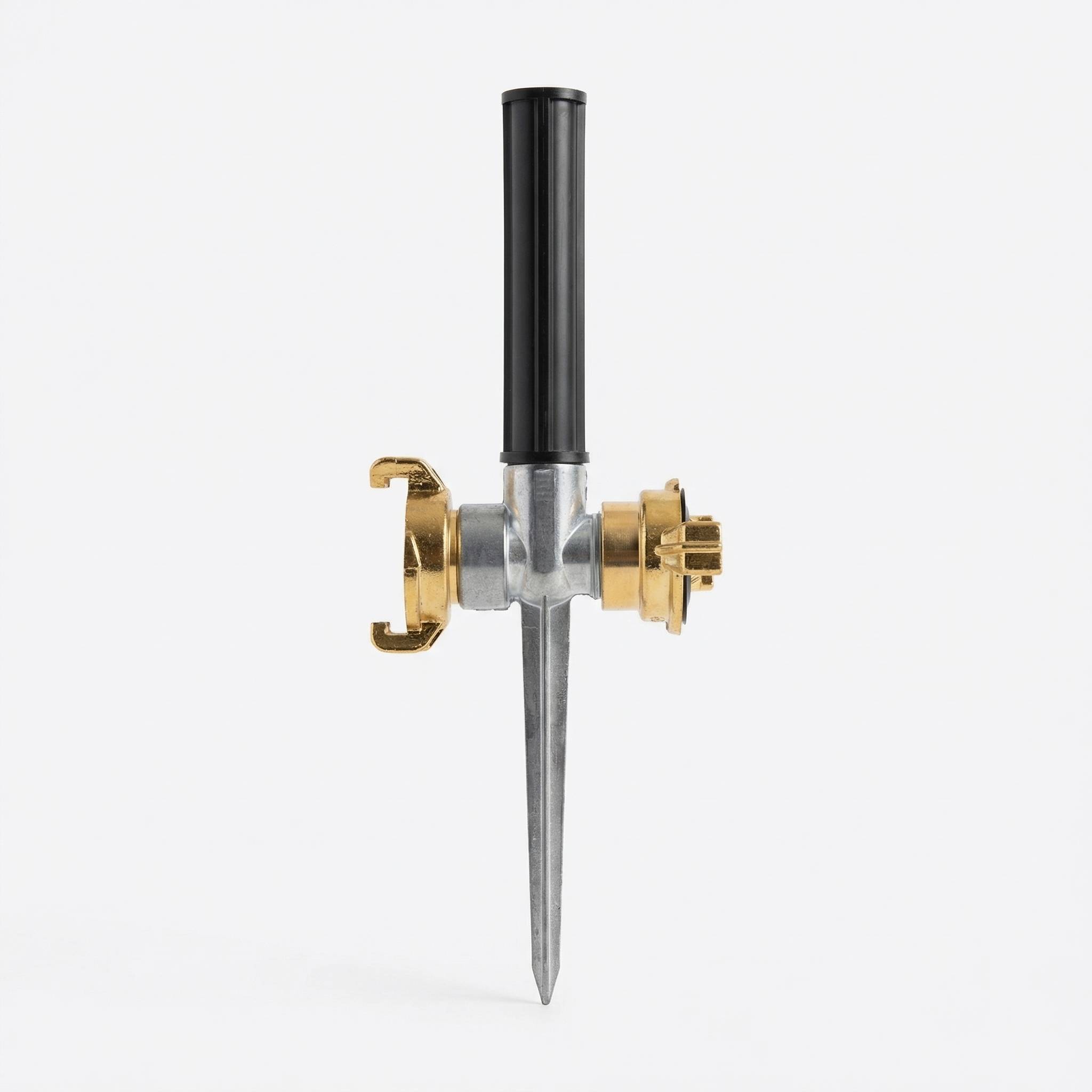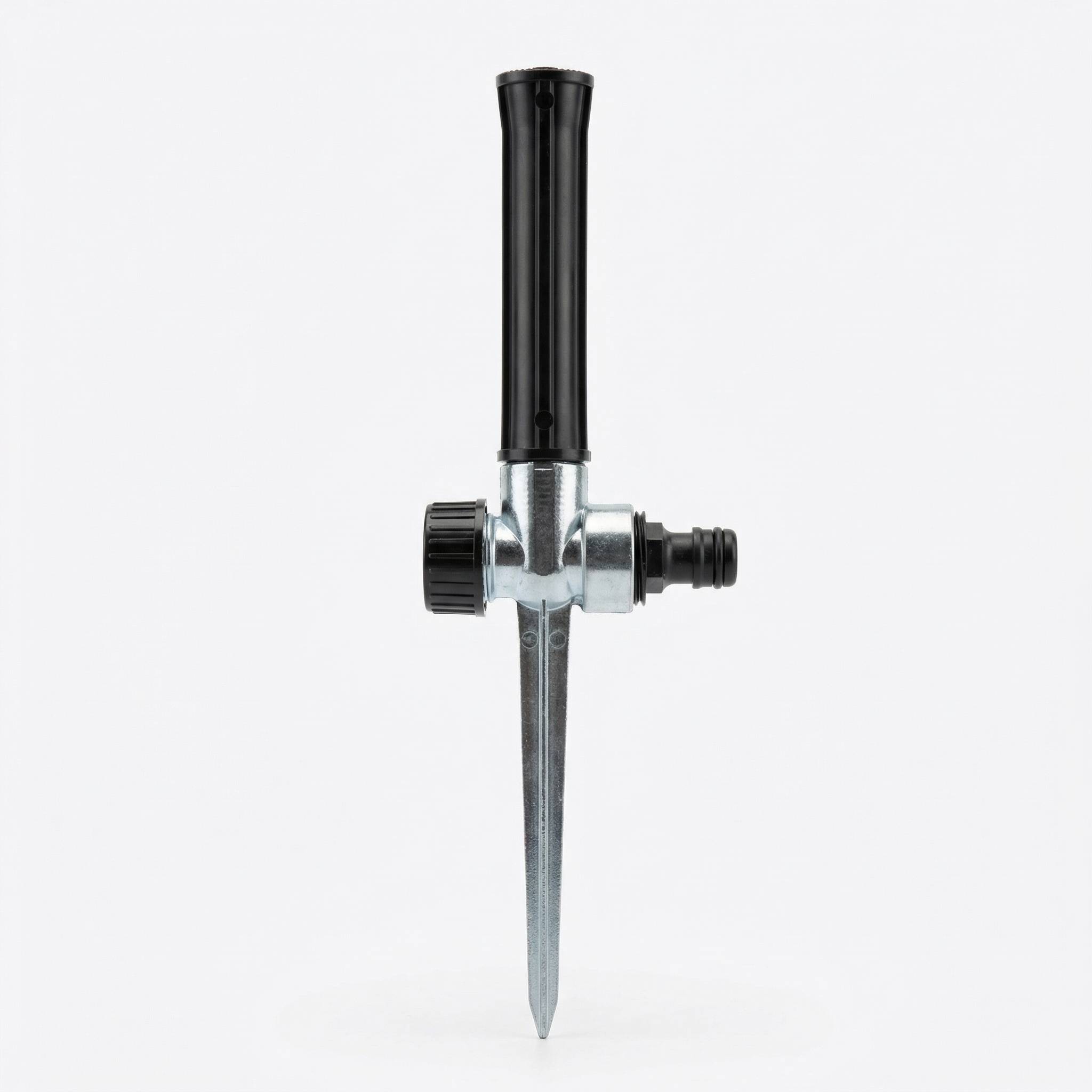 Use this spiked sprinkler riser for grass or soil, it has a strong metal spike for durability. The riser has a 3/4″ BSPM thread for the sprinkler and includes an adaptor for Eindor taper nozzles. Height of riser 0.5m.