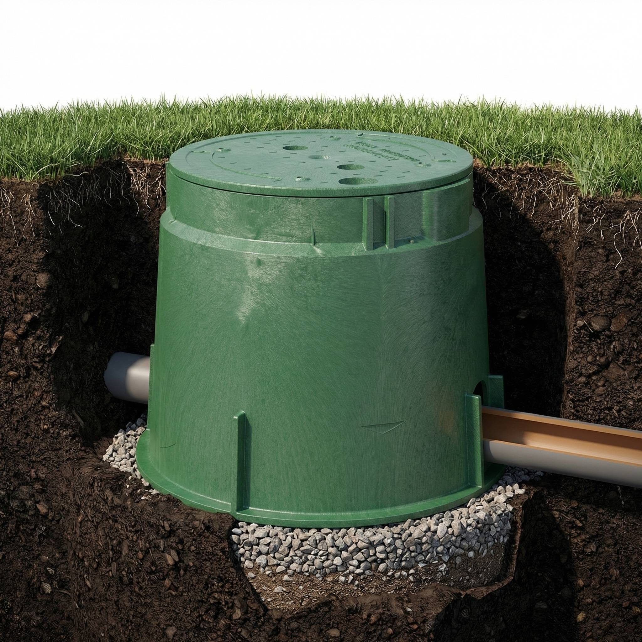 Dig a hole for the valve box that is larger than the box, as the pipes will need to be taken into the valve box area. Once the hole is the correct depth, compact the earth and lay a weed suppressant mat at the bottom to keep dirt and roots out of the box. Level the box with the surrounding area, bringing the pipes into the bottom and fit any valves or manifolds. Back fill and compact the soil around the valve box and put 25mm of small stone gravel in the base to aid drainage.