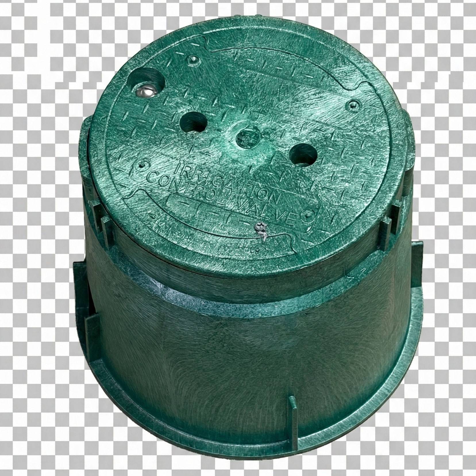 10″/25cm round valve box, height 26.5cm. Green plastic with green lid. Load requirements conform to EN124 Class A15 for pedestrian traffic.