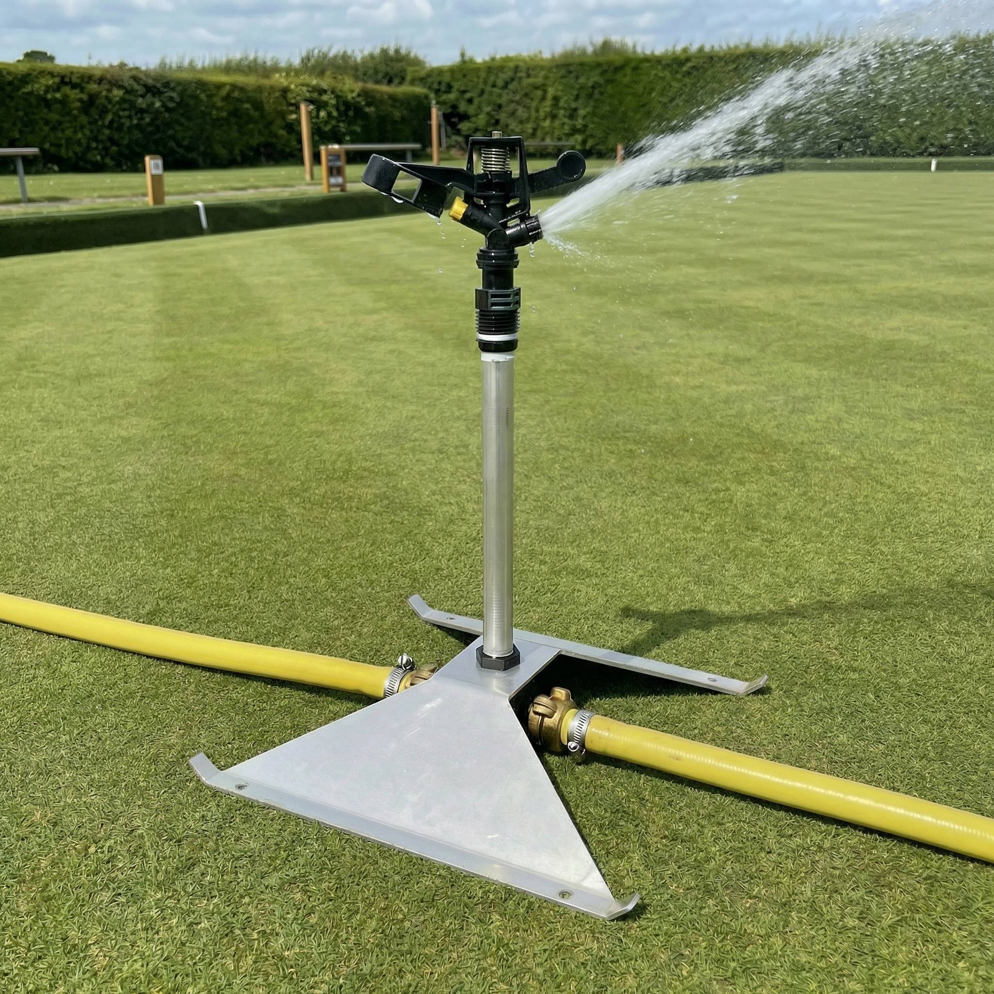 Temporary sprinklers system for watering 40m x 40m bowling greens. Designed to run from the mains water supply.
