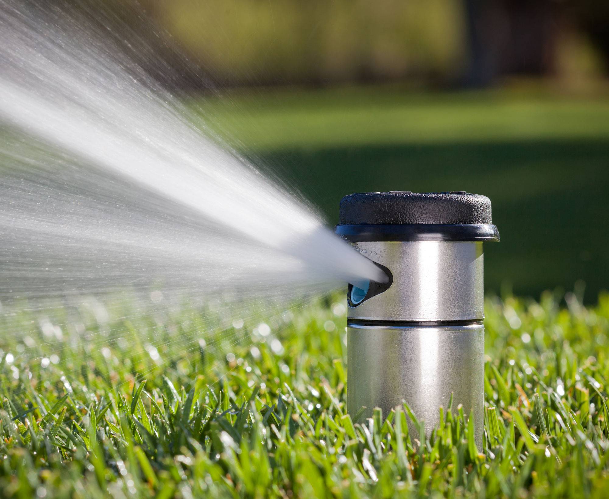 Once under pressure, the sprinkler rises out of the ground and waters in a pre-set arc. Corner sprinklers water a 90 degree arc and sprinklers down the long edge of the tennis court water in 180 degree arcs.