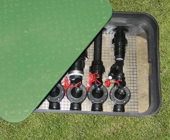 Heavy duty underground pipework brings the pressurised water to each sprinkler.